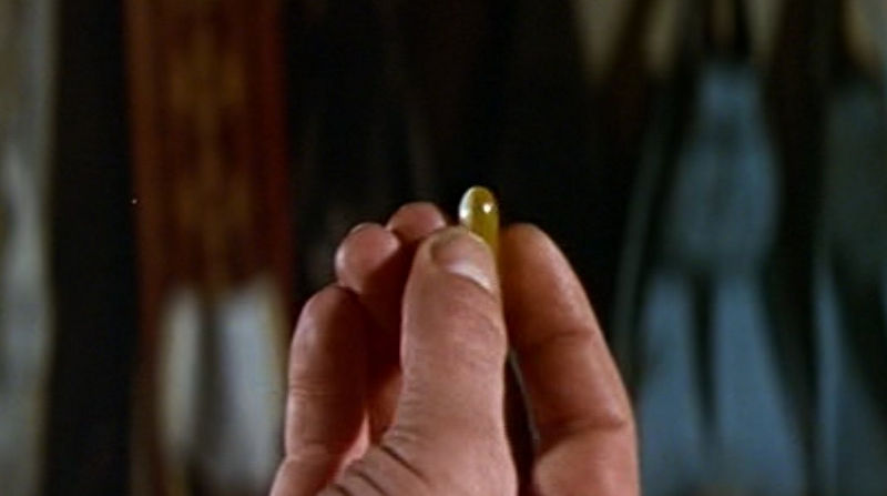 The last thing Q leaves Bond is a small pill that acts as a homing device. It was introduced with some classic Q-esque dialog:
